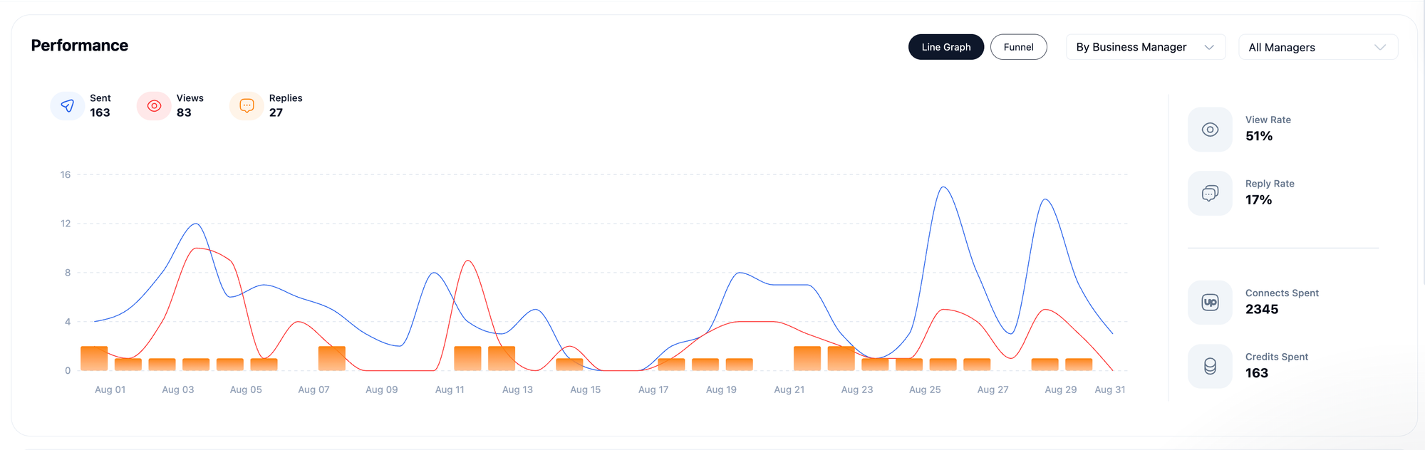 For software development agencies serious about scaling their upwork lead generation, Getmany provides comprehensive analytics that transform guesswork into strategy. The platform tracks every proposal metric that matters - from open rates and response times to win rates and project values.
