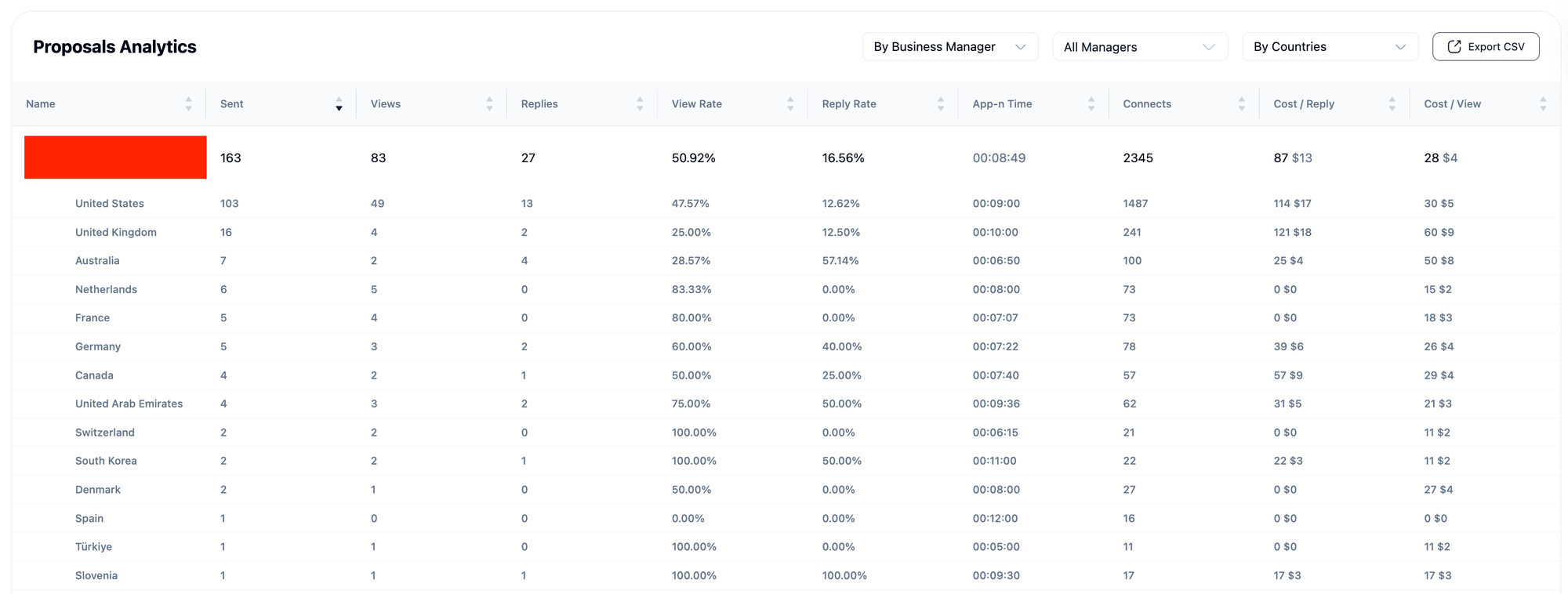 Actionable Optimization Data Instead of manually tracking proposals in spreadsheets, agencies get instant visibility into what’s working. Teams can quickly identify underperforming proposal templates, adjust their targeting based on conversion data, and scale successful strategies. This data-driven approach helps agencies move from the industry average of 1-3% win rates to optimized performance of 8-12%.
